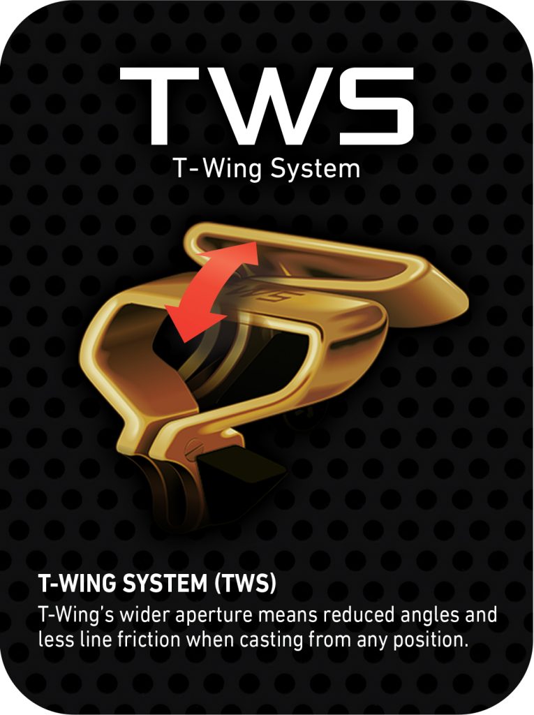 An innovative “T” shaped mechanical aperture that the line passes through when casting and retrieving baits, which allows the line to flow freely, reducing friction and sharp angles that slow line flow. TWS is unique to DAIWA baitcasting reels.