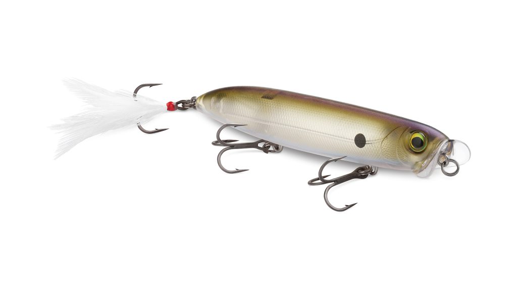 Line choice is also very important. Some anglers choose a straight 17-pound Sufix Advanced Mono while others, for increased sensitivity and strength, prefer braid with a short mono leader. When fishing topwater baits, this arrangement lets one have a more forgiving experience and helps minimize pulled hooks in aggressive battles.
